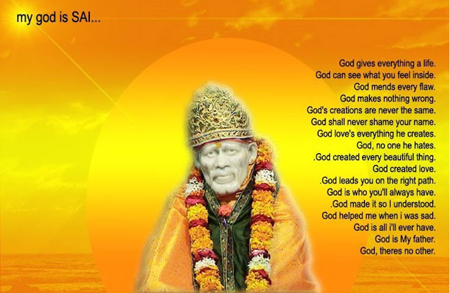 Very fortunate is the one who has learned to admire, but not to envy................ Pin all your hopes in god, and then you will not be pinned down by man................. The wealth of a rich man can be stolen or burnt, but the happiness & wisdom of the wise remain................ Life may be struggling, but is very good............ When in doubt, just take a positive step......... Life is too short, but we all have to go long way....... Your work would not take care of your health, but your Prayer to Baba,who is your father, mother & friend, will answer it............ Never be anxious to win every argument. Listen to others also................. Smiling is more healing than crying alone. Never get angry, Baba knows, when & how to take care of you............... Save for retirement starting with your first pay cheque. Make peace with your past & don't screw up the present. Never compare your life with others to make yourself miserable............... Never make any relationship a secret............... Everything can change in the blink of an eye. Have Shraddha & Saburi inBaba.............. Take a deep breath to calm the mind........... Be resourceful to acquire what you love in life....... Burn the candles to enlighten others. Don't save it for a specialoccasion. Today is special............ No one is in charge of your happiness but you. Be selective & choosey.............. Forgive & Forget to make others happy. Time heals all the wounds. Have patience. Good or bad is never permanent, welcome a change. God loves you because you are one of His creations. Come out & adopt positive attitude to witness miraculous ways of Baba........... Envy is a waste of time............ The best in you is knocking your door. Look in to feel His presence........... Never get into any arguments; feel fresh, get up, dress up & show upwith a smile................... Life isn't tied with a bow, but still is a gift showered by GodAlmighty................... If I keep the weaknesses of others in my mind, they soon become a part of me................... The ego is the poison of the soul...drink in the bliss and spit out the poison............... To be free from negative thoughts is to be free from punishment.................. In the long run the most difficult thing is to search for an easy way out............... If I enjoy praise, it means I can be easily hurt by defamation.................. Try to conquer greed now because “while man becomes old, his greed becomes youthful........... The end of birth is death. The end of death is birth........ The stronger your attachment the greater the power of the Maya (the illusion : Her creation) over you..... "I put firm faith in the words of my Guru, considering them more valuable than all the shastras put together." ........... Don't poison your soul, mind, heart and body with negativity....bathe in Divine positive love............ Your Soul is always trying to be heard above the noise of your mind, when you quiet your mind your Soul takes command!.................... Pin all your hopes in god, then you will not be pinned down by man................. Remember that you are very special. NO ONE can play your role better than you.................. If someone defames you or insults you, shower him with flowers, smiles and good wishes............ When you get angry, you lose more than your temper When all your attachments are with the one God, then your achievements are many............... When people cannot stand you because they do not understand you, God will stand by you........... To give happiness to others is a great act of charity. A slip of the foot we many recover, but a slip of the tongue leaves a deep imprint............ Life is like a drama. If I understand the plot, there is great happiness........... To smile in the face of disaster is the result of a stable mind............ If God answers ur prayer,He is increasing ur faith. If He delays,He is increasing ur patience. If he doesn’t answer,He knows u can handle........... You don't have to win every argument. Agree to disagree............... Make peace with your past so it won't screw up the present............... Don't compare your life to others. You have no idea what their journey is all about............ If a relationship has to be a secret,you shouldn't be in it........... However good or bad a situation is, it will change Life isn't tied with a bow, but it's still a gift."......... How many times should I forgive, I am tired of forgiving? – Forgive as many times as you would wish God to forgive you!................ Never do anything which you would not wish to do during the last hour of your life.............. Ego-based desire is the root cause of all suffering......... Contentment is the destroyer of all three - desires, anger and greed......... Knowledge leads to freedom, but pride of knowledge leads one to hell.......... A single act of selflessness can turn hell into heaven. The habit of giving rather than asking is the tool for an enduring relationship........... Silence is the best language.......... Only the joy that comes from right conduct is true happiness- Other pleasures are really sources of pain and causes of shame.......... A god-fearing person can never be religious, because if you fear God you cannot love him............. The most beautiful thing is to see a person's simling face.And even more beautiful is, knowing that u r the reason behind it..................................................................................With lots of good wishes and regards to all from Deepa H and family [ debu7366@yahoo.com ] ...............May Sai always give us peace of mind and May he always make us feel His presence where ever we go.... Saibhakt, Deepa H [You can always contact me at debu7366@yahoo.com ]......................................